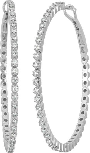 Bring bold sparkle to any ensemble with these handcrafted 18-karat gold hoop earrings lined with 50 icy diamonds.