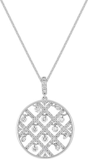 Handcrafted in 18-karat gold, this necklace gleams in an aura of timeless elegance with a cutout medallion that uses diamond pavé to create a glittery lattice. For additional sparkle, each interstitial site of the lattice suspends a round-cut diamond.
