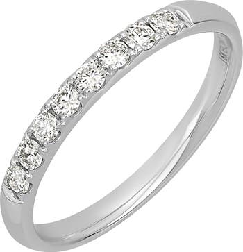 Handcrafted from 18-karat gold, this stackable ring is topped with eight pavé diamonds that catch light with your every gesture.