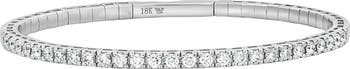 A row of 29 round diamonds adorns this 18-karat white-gold stretch bracelet that easily slips onto your wrist to bring fiery sparkle to your stack.