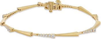 This handcrafted tennis bracelet captivates with fiery stations of 42 round-cut diamonds and the gleam of 18-karat gold.