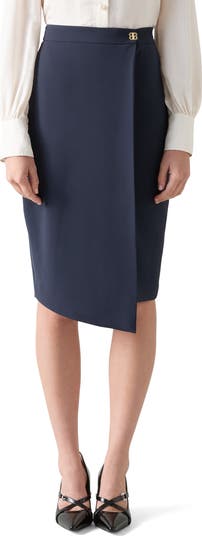 Logo hardware accentuates the faux-wrap silhouette of this crisp pencil skirt that's a smart addition to your office style portfolio.