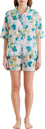 Painterly flowers swirl around lightweight and breathable pajamas cut from a luxe cotton-and-silk blend to help you drift off to dreamland in total comfort.
