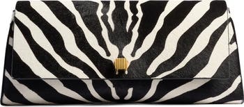 Zebra stripes add exotic contrast to this calf-hair clutch designed in a lightly structured, elongated silhouette and finished with a sculptural clasp plated in 18-karat gold.