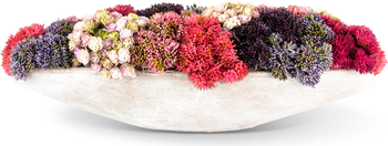 The August Sedum Arrangement is styled in a sleek, cement vessel with gently rounded ends and a soft matte finish, offering a clean, sculptural look. A thoughtfully arranged blend of lifelike sedum in natural, muted tones brings texture and quiet beauty to any space. Sophisticated yet organic, it’s the perfect accent for shelves, consoles, or coffee tables. A lasting luxury, timeless and unrivaled.