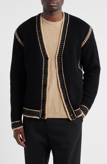 Contrast stitching adds dimension to this boxy cardigan knit from a warm wool blend that keeps you comfortable and looking sharp all season long.