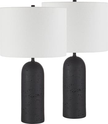 Soft, light-diffusing linen shades play well against the vintage-inspired finish of these lamps to give your contemporary space and elevated look.