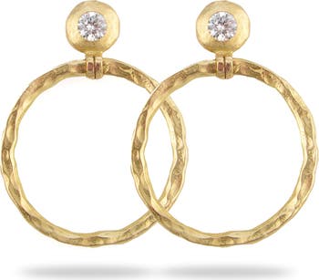 Introducing our Aura Bronze Earrings—a celebration of craftsmanship and sophistication. These earrings are meticulously crafted from hand-carved bronze rings, each bearing the mark of individual artistry. The centerpiece showcases a sparkling moissanite elegantly set within a stone setting, adding a touch of timeless glamour.|Wear a piece of wearable art that embraces the warmth of hand-carved bronze and the brilliance of the moissanite. These earrings effortlessly combine earthy charm with refined elegance, making them a versatile and striking addition to your jewelry collection. Elevate your style with this unique pair that embodies the perfect fusion of skillful craftsmanship and timeless beauty.