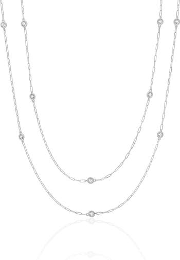 Hand-set cubic zirconia bezels gently illuminate this airy paper-clip chain necklace that wraps once or twice around your neck.