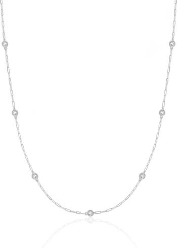 Twinkling, hand-set cubic zirconia bezels lend gentle sparkle to this airy paper-clip chain necklace of sterling silver.