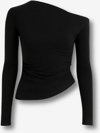 This elegant asymmetrical top features a soft draped design and a chic one-shoulder silhouette, perfect for evening wear or a night out.