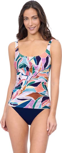 The Aura Square Neck D Cup Tankini is designed for a flattering fit with underwire support and removable soft cups. Featuring adjustable straps and front lining for