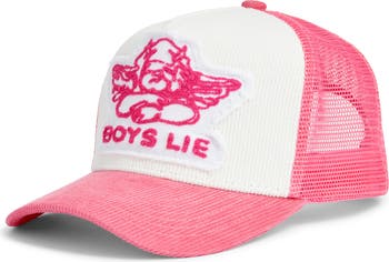 Pops of pink enliven this classic trucker hat so it stands out wherever you wear it.