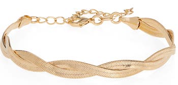 Snake chains are woven together to create dimensional, light-catching shine in this modern and understated bracelet.