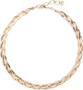 Snake chains are woven together to create dimensional, light-catching shine in this moderna nd understated necklace.