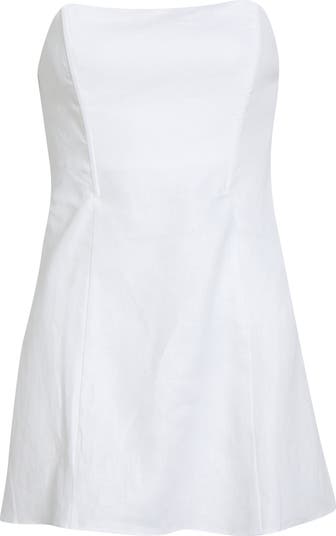 Structured seams shape the fitted silhouette of this understated strapless top made from breathable plain-weave linen.