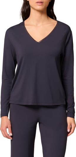 Dainty lace trim softens the silhouette of this stretchy pajama top that you'll reach for night after night.