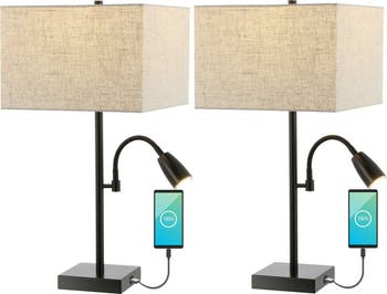 This pair of minimalist reading lamps combines classic style with updated features like the built-in USB charging ports. The square linen shade provides soft general lighting; use the spotlight on the base for reading or work. These versatile lamps are ideal for a bedroom, home office, or living room in either a traditional or modern home.