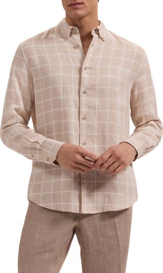 Cut from a lightweight linen-cotton blend patterned with classic checks, this shirt is made for comfort that still reads put-together. It wears equally well tucked or untucked and is fashioned with buttons in the collar that hold the shape and refine the look.