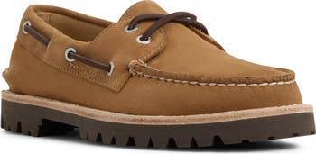Rich leather construction defines a classic boat shoe with the brand's signature 360° Lacing System and a lug sole featuring Wave-Siping™ technology for reliable traction in wet or dry conditions.