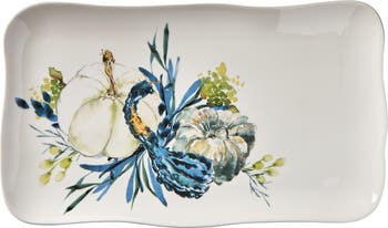- It's all in the details! serve up appetizers and hors d'oeuvres alongside beautiful bloom art for the fall season on this beautiful rectangular platter. made from earthenware, this platter features an organically shaped body with decal design. beautifully versatile and functional