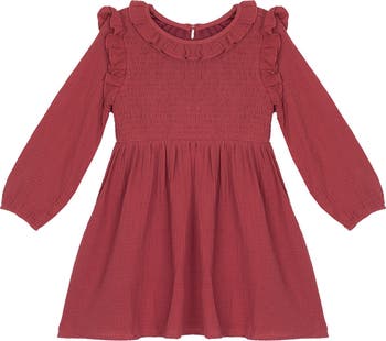 Our Autumn Dress features a textured gauze fabric that adds an element of charm while the ruffle detailing along the collar and sleeves lends a stylish touch. The dress also has a natural waistline to ensure a comforting fit.