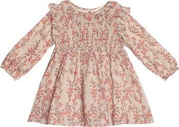 This long sleeve dress dress features a ruffled collar and shoulder detail while the smocked front adds a stylish touch. Crafted from a lightweight fabric, this dress is perfect for the crisp fall days, ensuring your little one stays cozy while looking effortlessly beautiful.