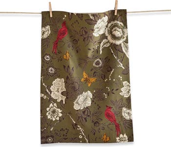 Autumn Tolie Green Print Cotton Kitchen Dishtowel 26Lx18W