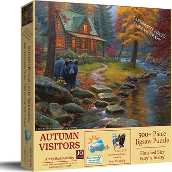 Embark on a tranquil journey with the Autumn Visitors 500 Piece Jigsaw Puzzle, featuring stunning artwork by Abraham Hunter that beautifully captures nature's serene transition into fall. As you assemble this vibrant tapestry, get lost in the glowing hues of autumn leaves and the captivating presence of wildlife, making it perfect for cozy evenings at home. Crafted by SunsOut Puzzles, the interlocking pieces are meticulously designed to fit securely, minimizing frustration and enhancing the joy of the assembly. Made from high-quality recycled cardboard, this durable puzzle is gentle on the environment, showcasing large, easy-to-handle pieces that make it an ideal leisure activity for adults. By choosing the Autumn Visitors puzzle, you are committing to quality and environmental consciousness, as SunsOut employs eco-friendly soy-based inks and the finest recycled materials, upholding sustainable practices while maintaining vibrancy and detail. As a woman-owned small business proudly manufacturing in the USA, SunsOut ensures high standards and a positive impact. Enjoy peace of mind with their worry-free guarantee, addressing any issues with missing or damaged pieces promptly, highlighting their dedication to customer service and product integrity. Delight puzzle enthusiasts and nature lovers in your life with this captivating scene, which measures 20" x 27" once completed, creating a striking piece of art perfect for quiet afternoons or gatherings with fellow puzzle aficionados, bringing warmth, beauty, and adventure to any space.