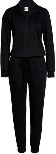 MADE IN THE USA Our Ava Jumpsuit nails the cozy but cute look. Elevate your athleisure game in this blouson-waist jumpsuit cut with a standing collar and long sleeves. This one and done jumpsuit, is perfect for chilly days ahead, your next flight, or any time you want to be cozy but can't sacrifice looking cute. FABRIC 95% TENCEL™ Modal/ 5% Spandex Soft, natural Modal French Terry fabric Fabric is brushed inside, smooth outside Cozy and durable fabric that gets softer and softer Added stretch for best fit and fabric recovery Sustainable fabric knitted locally in Los Angeles FIT Soft, structured rib collar and cuffs Half zippered style through collar Metal zipper with Lezat custom logo pull tab Drawstring with elastic waistband 55" length; 28" inseam; 10" leg opening (size Medium) Modeled in size Small Masha's Measurements: Height 5'9.5"/176cm Waist 26"/66cm Hip 36.5”/92cm Bust 32.5"/82cm Size Guide CARE Machine wash in cold water with like colors.