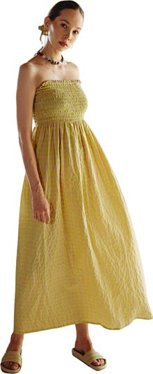 Ava Strapless Crinkle Gingham Dress in Lemonade