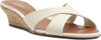 An espadrille-inspired wedge heel adds earthy sophistication to this closet-staple sandal topped with crisscrossing straps.