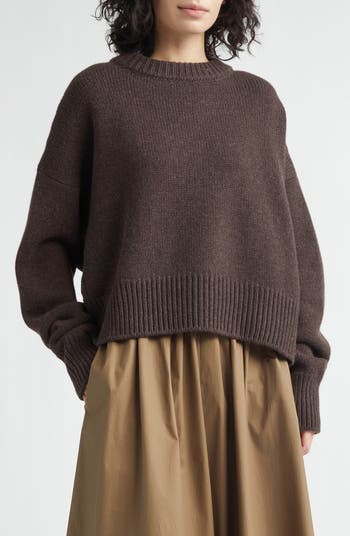 Sweater weather feels ultraluxe in this boxy, dropped-shoulder crewneck knit from an indulgently soft, lightweight blend of merino wool and cashmere.
