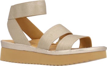 A shimmery metallic finish adds a touch of glamour to this ankle-strap sandal grounded by a supportive and well-cushioned footbed.