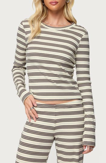Love to lounge around in this supersoft stretch-cotton top textured in fine ribbing and framed by long sleeves.