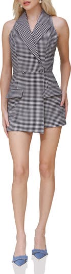 Dainty checks make a charming statement on this sleeveless jumpsuit fashioned with blazer-inspireed peaked lapels.