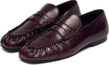 A classic penny strap crosses the moc-stitched toe of this supple leather loafer designed in Barcelona.