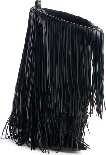 Demna’s latest collection 'Exactitudes' revisits classics from his past decade with the label—and the Avenue boot gets a playful update with tiers of swingy fringe highlighting the ultrawide shaft. The lookbook-featured style retains its sleek knife heel and elongated pointy toe to honor Balenciaga archetypes.