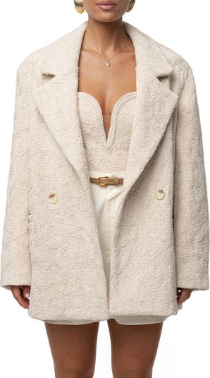 Swirled stitchwork adds homespun charm to a roomy blazer that will get asked about.