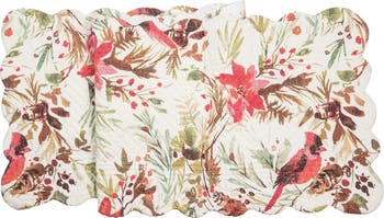 Celebrate the beauty of the season with the Averie Cardinals & Holly 100% Cotton Quilted Christmas Table Runner, a perfect blend of elegance, comfort, and holiday charm. Designed with vivid red cardinals perched among natural holly leaves, evergreen sprigs, and poinsettias, this runner brings a touch of winter nature to your tabletop. Made from premium 100% cotton, it features a quilted texture that adds dimension and durability for long-lasting use. The reversible design offers two coordinating looks, allowing you to easily refresh your table setting throughout the holidays. Scalloped edges add an elegant finish, highlighting its craftsmanship and timeless appeal. Ideal for dining tables, buffets, or console displays, this versatile accent complements a variety of home styles from classic to contemporary. A wonderful seasonal décor piece and thoughtful gift, it enhances festive gatherings with warmth, color, and enduring beauty.