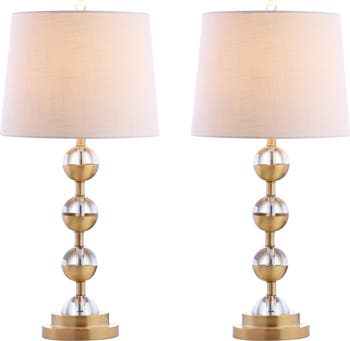 A well-rounded table lamp with modern brass accents, this piece's symmetry and style will stun in your space. We love how the orbs seemingly continue up until the matching crystal finial, and all seemingly glow when the bulb is illuminated. Whether you're going for a midcentury bungalow or traditional elegance, this versatile piece can blend with any style of decor.