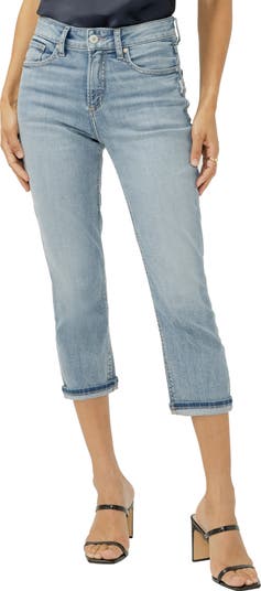 With a contoured waistband and extra room in the hips and thighs, these stretchy capri jeans are all about that curve-hugging fit.