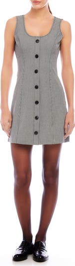 Decorative buttons detail the front of this pretty, polished dress covered in a houndstooth print and cut to a leggy length.