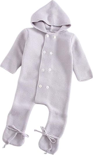 Bundle your kiddo up in the cute and cozy comfort of this knit footie with an attached hood and ties at the ankle to find that perfect, action-ready fit.