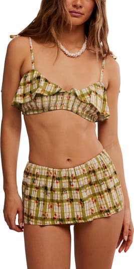 A fluttery ruffle overlay moves in the breeze as you soak up the sun in this smocked bikini top from the brand's signature free-est collection.