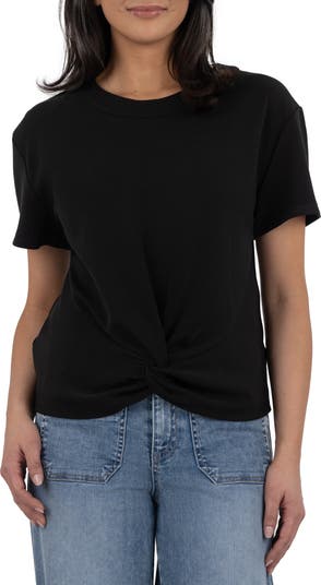 Take your off-duty style up a notch with this crewneck T-shirt complete with a chic twist-front detail.