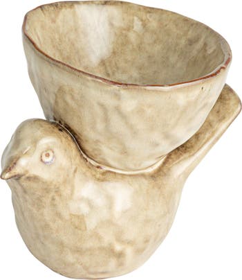 - A serene cream stoneware bowl that captures the essence of a bird, complete with a round body, delicate wings, and a detailed head