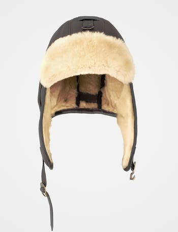 Inspired by classic styles of the early 1900s, our men's flying cap puts a typical Celtic & Co. spin on the look. This aviation-inspired accessory is designed in black leather and trimmed with fluffy sheepskin, adding a note of plush comfort that'll be welcome on chilly days. Style it your way by fastening the ear flaps up or fasten the underchin strap to keep out biting winds.