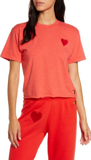 A heart is patched at the chest of a boxy-fit T-shirt in a soft cotton blend.