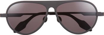 Made from matte black titanium, the aviator frames of these chic sunglasses are fitted with adjustable nose pads for customized wear.